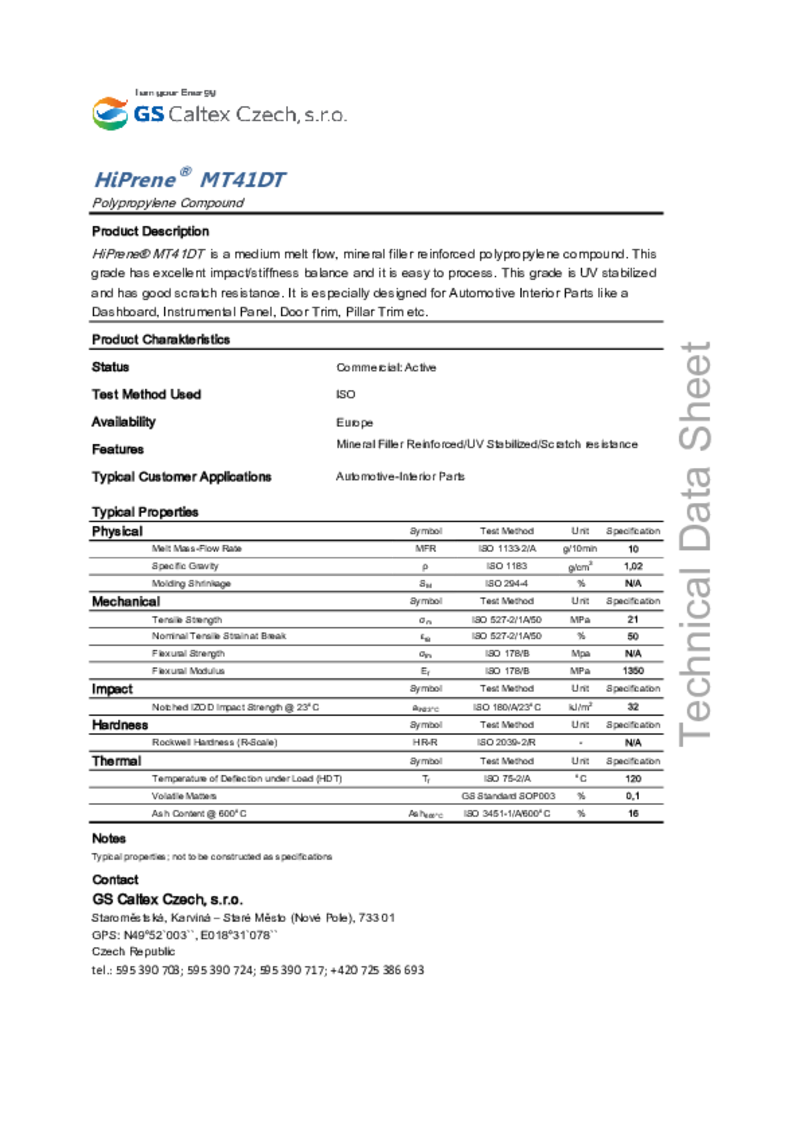 HiPrene® MT41DT ist ein mit 12 % Mineralien gefülltes, schlagzäh modifiziertes Polypropylen-Compound, das für Spritzguss geeignet ist. Dieses Material wurde für äußerst anspruchsvolle ästhetische Automobilanwendungen mit perfekter Kratzfestigkeit und UV-Stabilisierung entwickelt. Es eignet sich besonders für Anwendungen im Autoinnenraum, die Duktilität erfordern, da es eine hohe Schlagfestigkeit und eine sehr hohe Kratzfestigkeit erfordert, da es sich im Autoinnenraum befindet. Diese Sorte ist in natürlicher oder farblich abgestimmter Pelletform erhältlich.