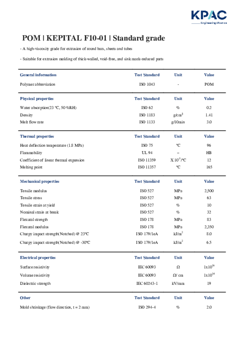 - A high-viscosity grade for extrusion of round bars, sheets and tubes