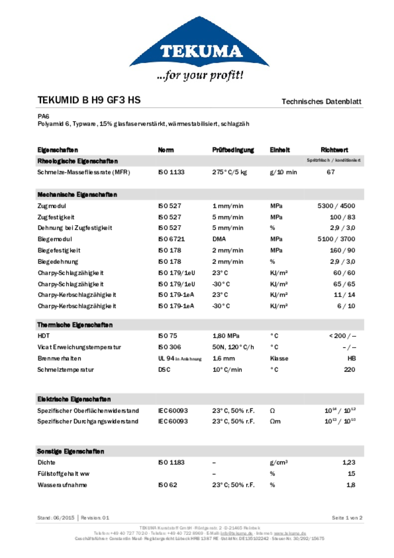 Polyamid 6, Typware, 15% glasfaserverstärkt, wärmestabilisiert, schlagzäh