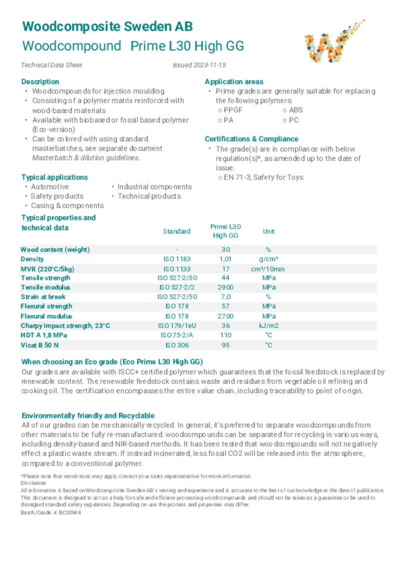 fossil basiertes PP und 30% große nachhaltige Holzfaser, schlagzäh modifiziert, erfüllt EN 71-3 (Spielzeug)